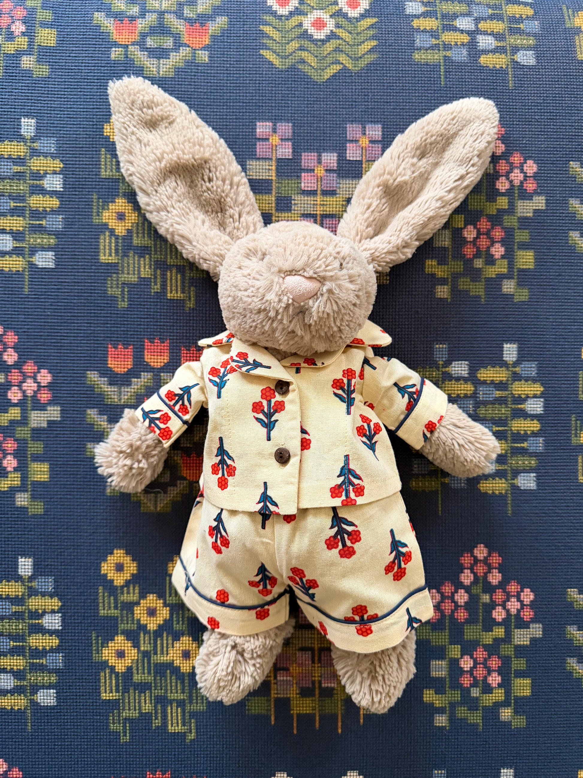 Lennon Toy Pyjamas in our classic Lennon style shirt. Made to fit 30cm Jellycat Bunnies or a teddy of a similar size. Has discreet split in the back for a bunny tail.